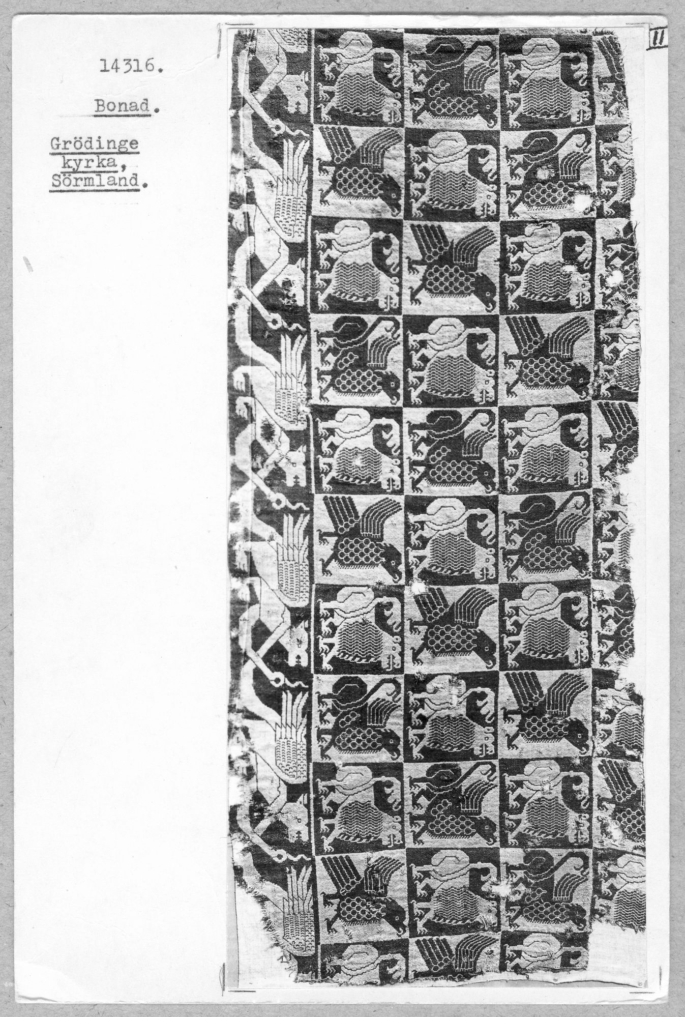 On top of giving me this link to the original piece in a Stockholm museum (click on the image in that link to see a much larger view), he told me that it is a 15th century piece from Grodinge, Sweden that has been analysed and reproduced in part by Ulla Feltzing, THE expert in finnweave in Sweden..